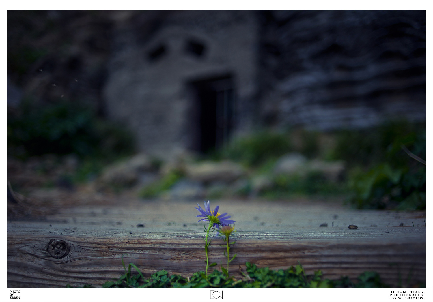 뒤늦게 핀 해국 한송이가 진지를 바라보고 서있다
