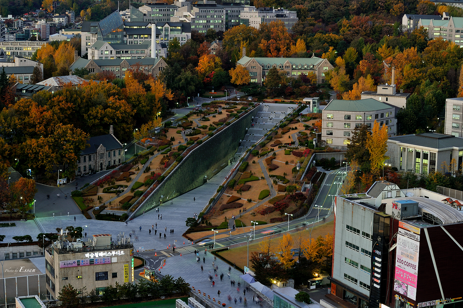 이화여대 정문앞 모 쇼핑몰 옥상에 올라 괴상망측해진 이화여대 정문도 담고
