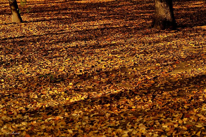조정 연습하는 선수들과 단풍이 흐드러진 은행나무,